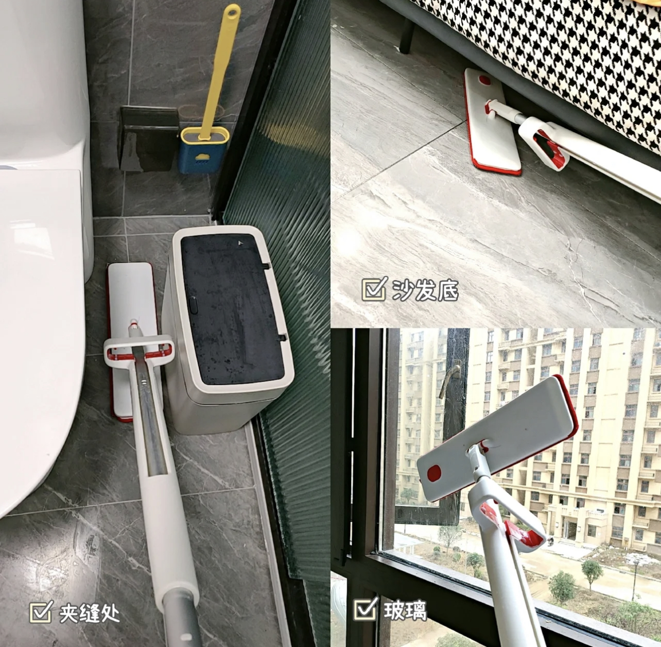 甚至,她还开发出了,除了拖地以外的功能比如当作床底的清洁刷用,当作擦玻璃的来用。