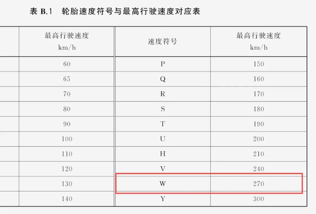W指的是最大速度等级,W对应的是270km/h。也有表格的。