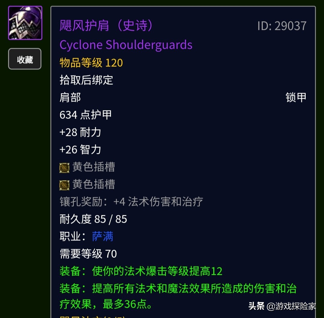 头部:飓风面甲,卡拉赞王子掉落T4套件兑换;下位替代品为闪电皇冠,虽然只有100装等,但是超高的自然法伤让它碾压了除T4外的其他装备,而且它世界掉落,可以直接从AH购入。