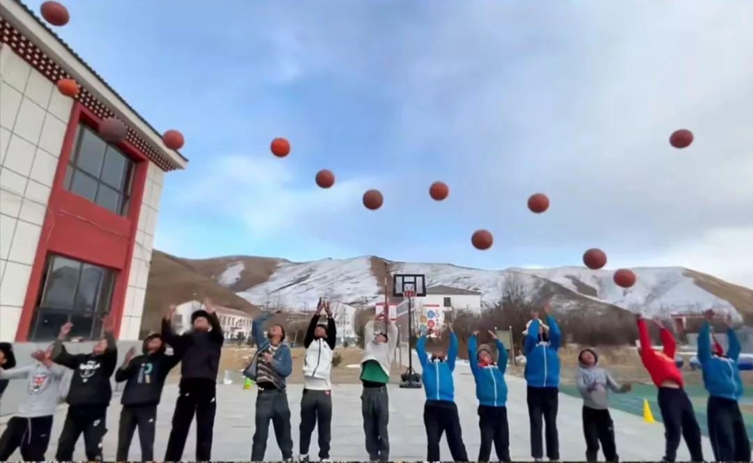 披上孩子们送上的哈达,白冰充当导游,也陪伴了这些孩子们与当地同学进行交流赛。