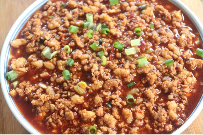 另外起锅烧油、猪肉末下锅煸炒、里面加入食盐、耗油、生抽、老抽、豆瓣酱、翻炒均匀就可以了。