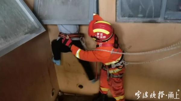 约10分钟后,杭州湾新区大桥消防救援站的队员们赶到了现场,看到一名女子站在21楼厨房与卫生间相连的防盗窗上,而她的头顶,距离22楼的窗沿还有一段距离。