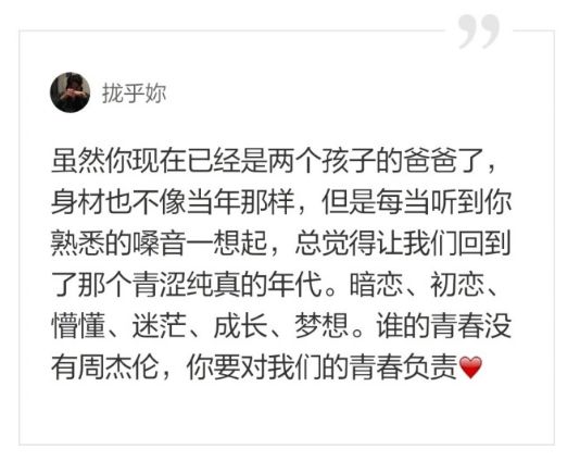 “谁让我的偶像是最好的周杰伦,喜欢他的孩子都不会变坏。”