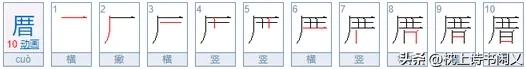 笔画顺序:横、撇、横、竖、竖、横 、竖、横折、横、横