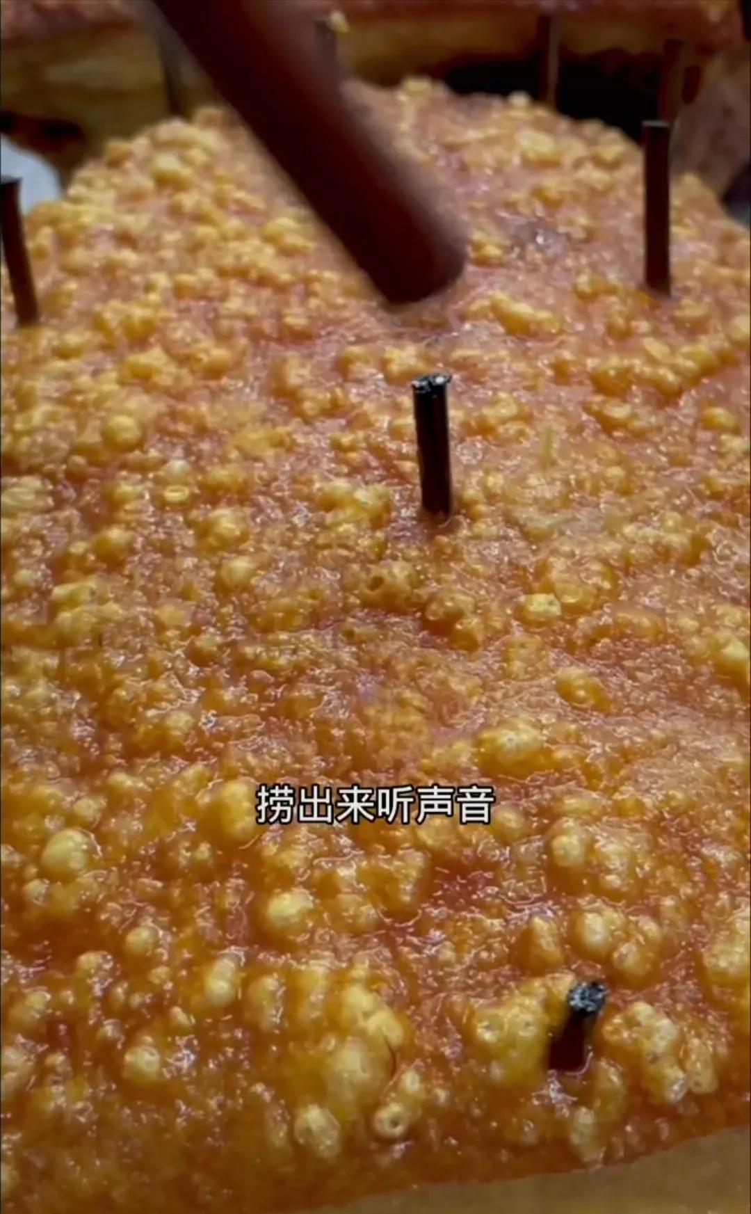 2把五花肉捞出来,肉皮朝上放在砧板上,用竹签或钢针在皮上插孔,要均匀密些,在皮上抹上白醋,洗去油脂,再擦上生盐,让其渗入去,使其炸时起爆米花。