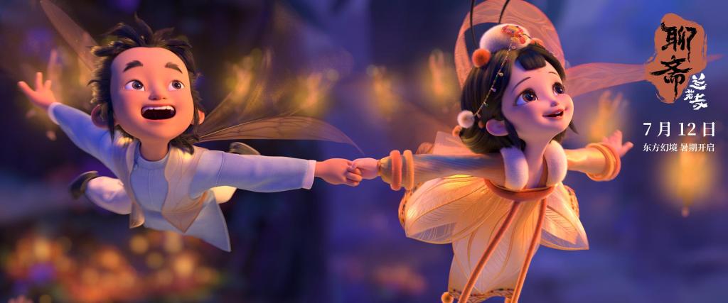 此外,《聊斋:兰若寺》的改编立场也值得关注。作为出品方,“追光动画”近年来以“新神话”、“新传说”和“新文化”三个系列布局动画长片,视效美轮美奂精益求精,目标观众略有不同。同样是弘扬传统文化,“新神话”、“新传说”的《新神榜》和《白蛇》系列更偏成人向,结合诸多青年亚文化元素,用融合赛博朋克、工业废土等后现代美学风格的传统故事现代演绎,吸引青年观众。而以《长安三万里》开篇的“新文化”系列,则更面向全年龄段观众,试图打造别具一格的中国风“合家欢”动画电影,文化定位上,更接近传统经典的全民推广。因此,同属于“新文化”系列的《聊斋:兰若寺》,改编基调就有两种面向,一方面,相对贴合原著,用生动活泼的动画语言赋形传统经典内在神韵,让低幼观众感受中华文明的鲜活魅力;另一方面,又试图通过表达形式或内容主旨方面的创新,链接当下文化场域,吸引更多成人观众。