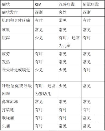 年初至今,主要有三种病毒在流行,为新冠病毒、甲型流感病毒和RSV,这三种病毒都是可以通过空气传播、且传染性强的病毒,均会引起发热、咳嗽及鼻塞流涕等症状,因此有时很难区分感染了哪种病毒,虽然他们有不少相似的症状,但也是有一些区别的,如流感病毒感染潜伏期短,通常是突然发热,高热为主,而另外两种则是逐渐发病,且RSV感染的患儿中腹泻较为少见,明确诊断的话建议进行相关核酸或抗原检测。