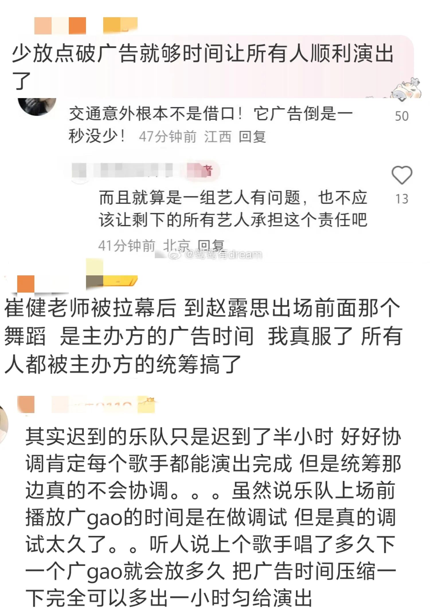 赵露思是最惨的,30分钟的表演只唱了将近7分钟,她还是给主办方捐赠了百万的,最后还要被骂压缩崔健的时间是为了给她留表演时间。