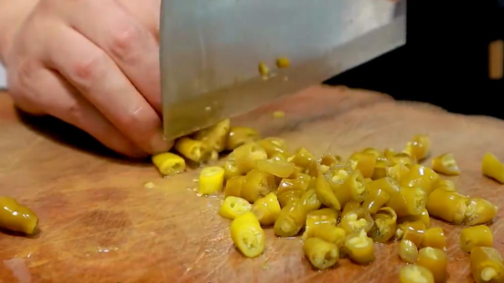 3.酸菜滑肉要想更好吃,除了要突出酸味,辣味也是必不可少的。再准备点泡野山椒圈,具体的用量根据自己的喜好添加。最后再切点小葱花和几个拍蒜就好了。