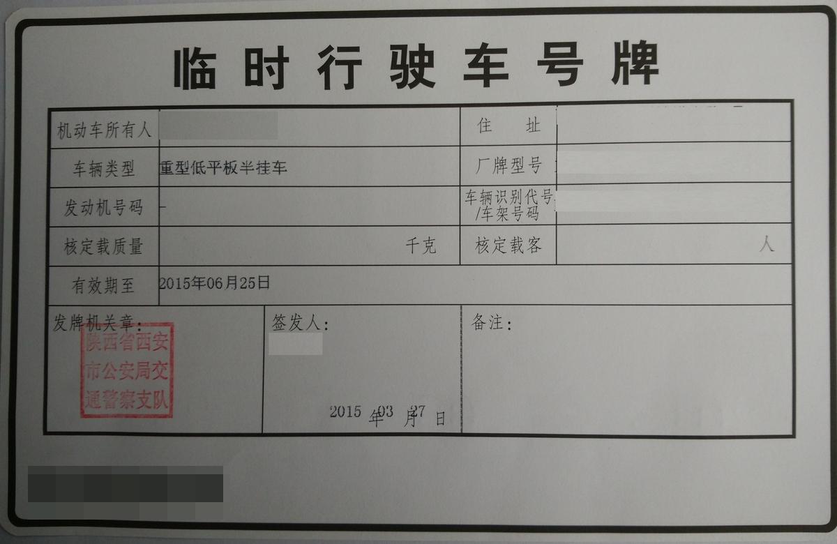 超限临牌是专门给大件车准备的一个“临时身份证”。
