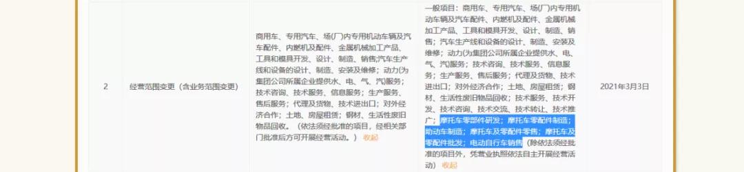 在五菱拥有电摩资质之后,就意味着可以合法进行燃油摩托车、电动两三轮车全系产品的生产和销售。而根据国家企业信用信息公示系统显示,广西汽车集团在今年三月份就将“摩托车零部件研发;摩托车零配件制造;助动车制造;摩托车及零配件零售;摩托车及零配件批发;电动自行车销售等内容增加到自己的经营范围内。