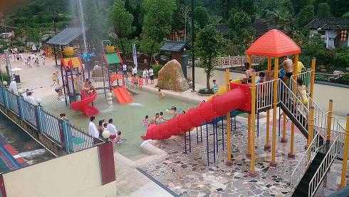 九寨温泉水上乐园内拥有"儿童水上乐园";"幼儿池"、"巨兽碗"、"巨蟒滑道“、”三彩滑梯"“海浪池”等高科技的水上游乐设施,当然还有双料温泉可以泡起来哦。