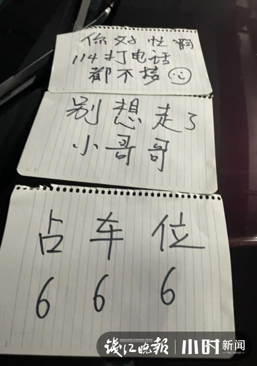 小悦说,对方已经把车开走了,她的车子终于从车位里开出来了,“下次我也要注意,我马上就写个自己的电话号码放车上。”