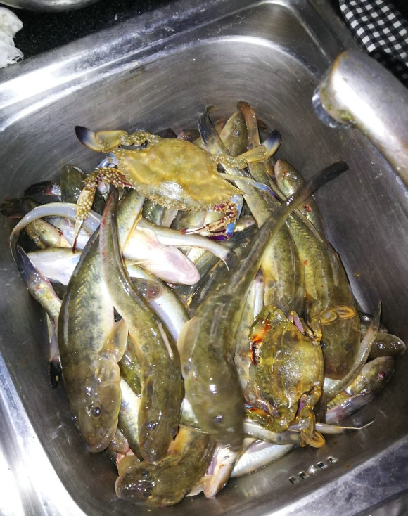 比如下面这位江苏连云港的钓友,在内陆的一条小河沟里,就钓起一种许多稀奇古怪的“海鱼”来。
