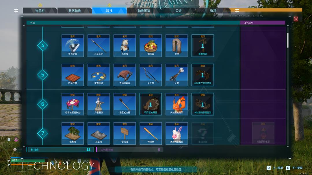 帕鲁世界中角色的强度与装备、帕鲁形成了强关联,看似复杂多元的缝合玩法其实均围绕着角色等级展开。几乎完全脱胎自《方舟:生存进化》的生存建造,升级会给予玩家属性与科技点数,前者可以直观地强化角色的血量、负重等三围,后者则支撑装备、建筑的解锁。