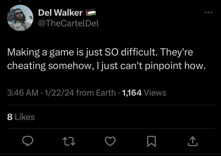 一位顽皮狗的员工就公然发表了《幻兽帕鲁》在本该充满困难的游戏制作过程中“充满恶意”地“作弊”,但是他也不知道其是怎么做到的。