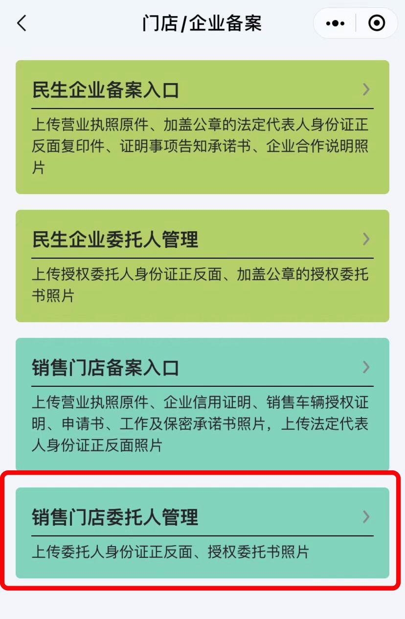 1)销售门店法人进入“销售门店委托人管理”;民生行业的企业法人则进入“民生企业委托人管理”。