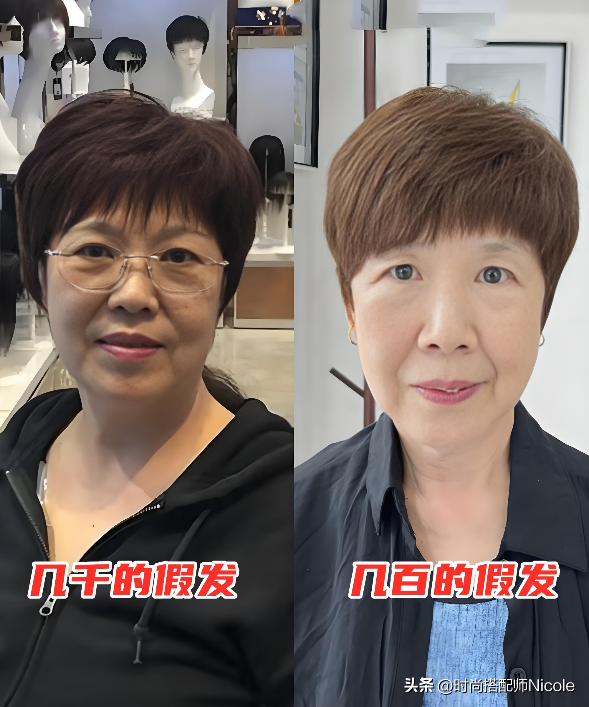 加上很多成品假发的发型设计本身就比较老气,都是十几年前的款式,戴上后反而比自己原来的发型更显年龄。