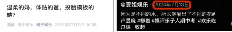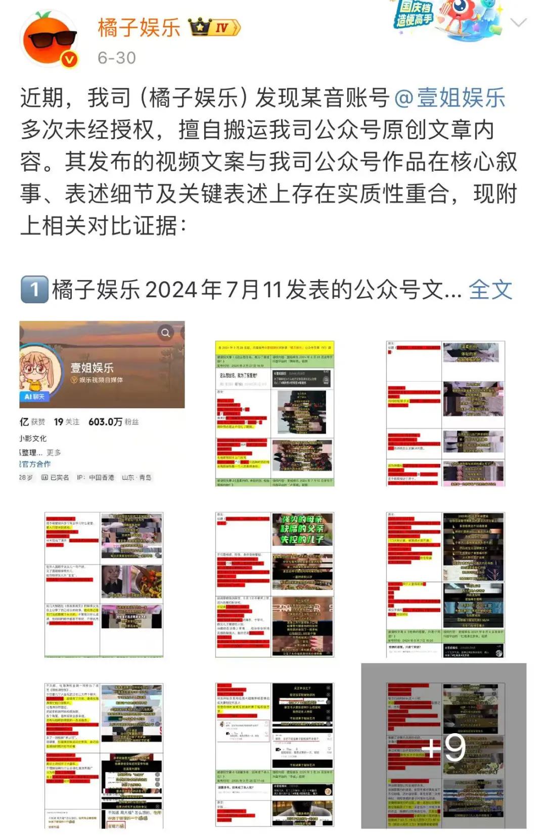 之后也是按照「橘当天发文,壹姐娱乐次日照搬」的模式,