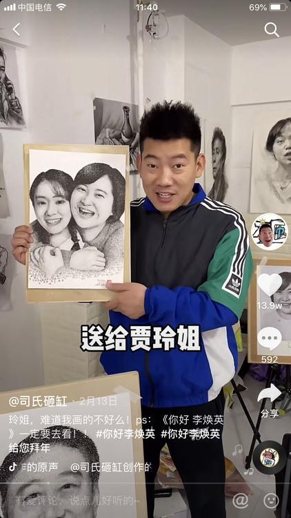 经过半年,赵龙的万字画能拿出手了,第一张在抖音走红的是明星李现的画像,“《人民日报》也点赞转发了”,明星艺人开始主动找到他索要画,赵龙的“艺术创想”终于落地生根,枝繁叶茂。