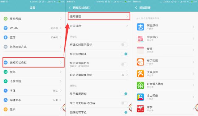 经常会看到通知栏有很多很多很多的APP推送的各种消息!这个时候怎么办呢?
