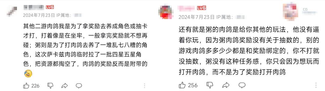 一个具体差异在于,有不少玩家评论说,打其他一些二游限时肉鸽感觉像坐牢,像是为了拿资源而不得不走的过场,但凡奖励拿完绝对不想再玩;但玩集成战略时就来劲了,奖励仿佛成了次要条件,很多人纯粹是为玩而玩。