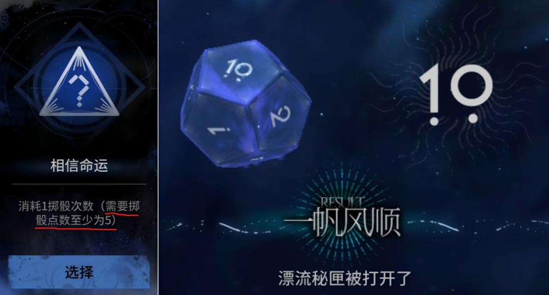 比如水月肉鸽的骰子,它能投掷出不同点数,而点数会影响事件的结局,或者局内的一些效果;