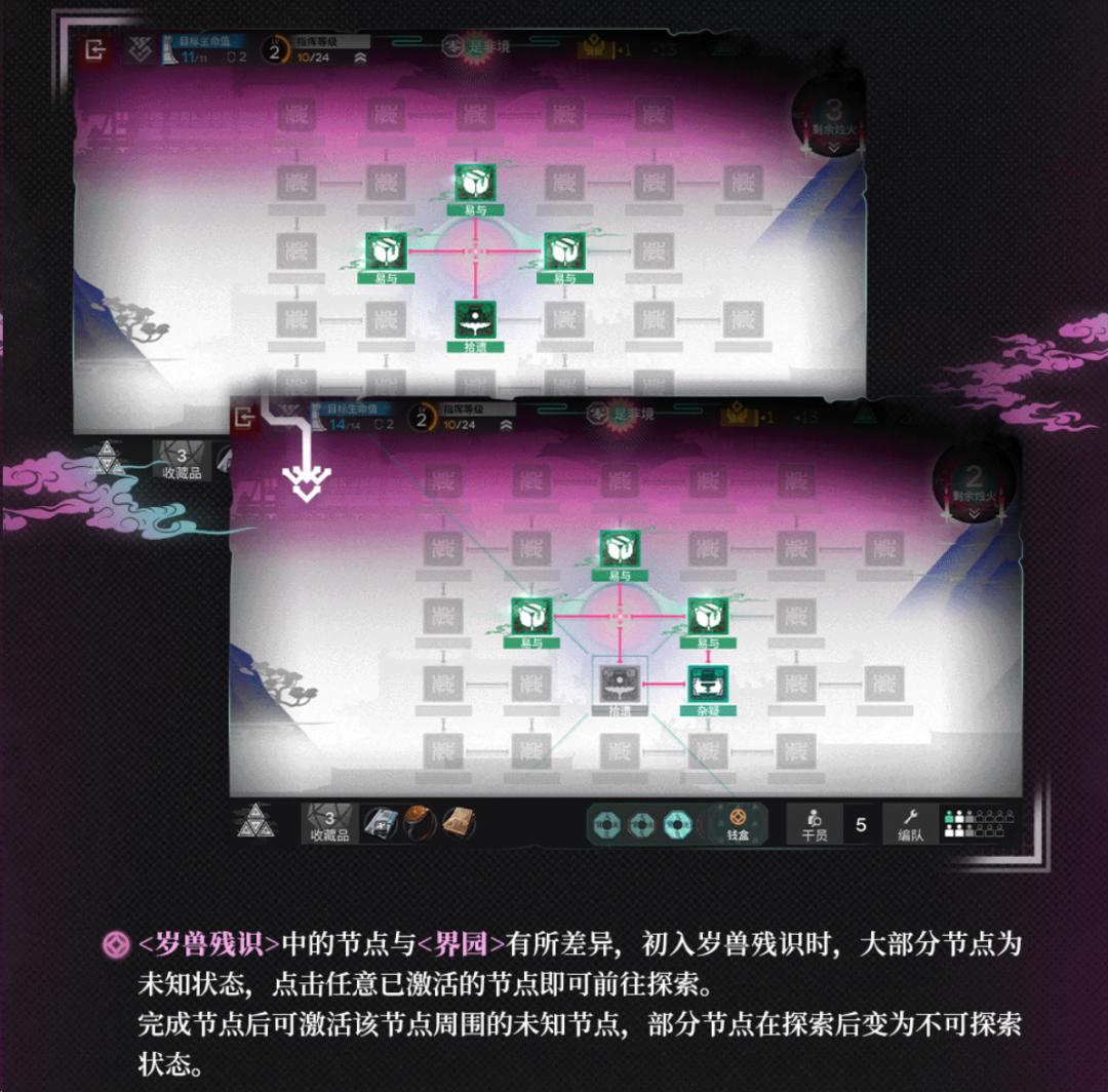 再比如,他们担心,连续几年不动基础框架(三个空间)、推出新主题机制的改法,会让玩家觉得乏味。所以在这次大炎肉鸽中,团队尝试性地调整了地图结构,部分节点不再是传统的「从左向右」线性探索,尝试让招募券可以保留、不需要即刻使用……