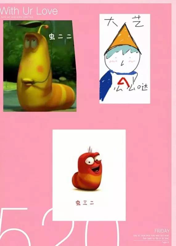 大艺今年七岁了,长得白白胖胖的,非常可爱。大艺很聪明,他有两个朋友,是两只古灵精怪的虫子,虫二二和虫三二。至于为什么没有“虫一二”,这个问题小编去趟火星就知道了。请看二逼三人组,汗!!!!!!