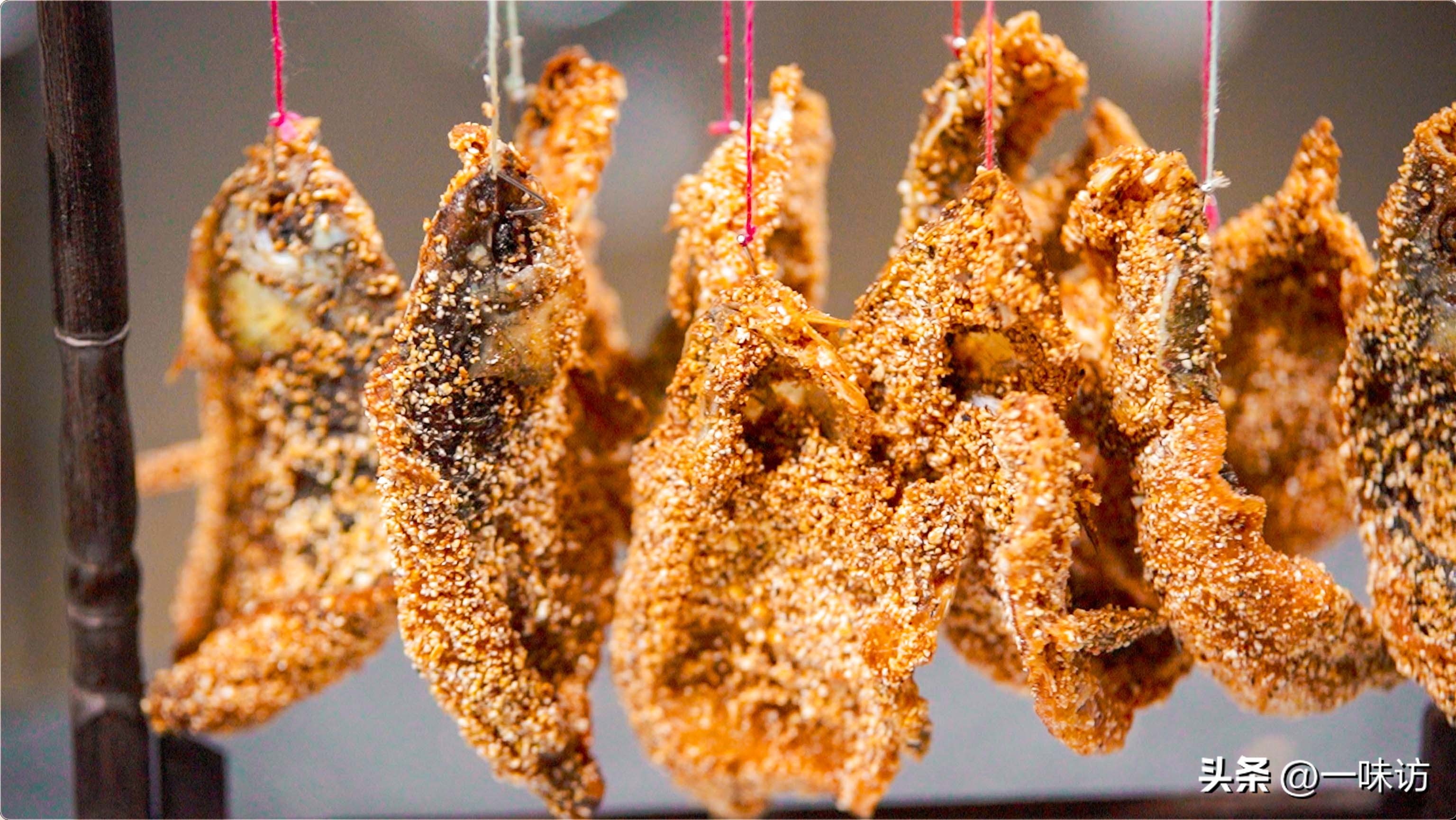 大厨选用的是挂鱼的支架,将每个鱼块用钩子挂起来供客人品尝。这样子吃起来不但省事还显得非常有韵味。