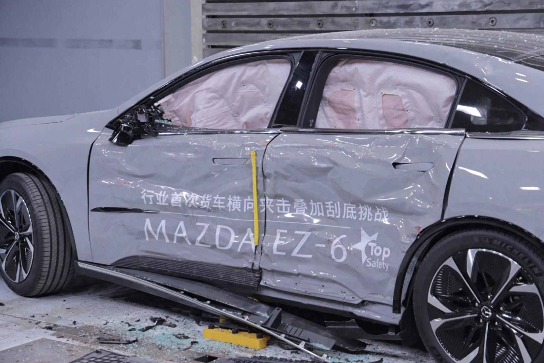 10月26日,MAZDA EZ-6正式上市,这款传承马自达核心DNA的合资新能源轿车,安全性如何?长安马自达对EZ-6进行了行业首次“货车横向夹击叠加刮底挑战”,此次碰撞测试所模拟的场景,正是汽车通过丁字路口时,被超速行驶的大货车猛烈撞击车身侧面,进而造成车辆横向滑行,底盘电池包托底磕碰到马路牙,再度撞击墙面的连环碰撞事故场景,对车身结构强度、安全气囊保护、电池安全,带来三重严苛检验。