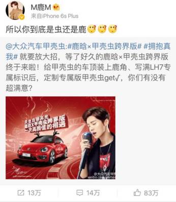 你鹿可是迪尼斯世界纪录微博点赞百万级的世界级选手!尽管他的微博不是广告就是猫,依旧抵挡不住你鹿超高超高的人气!