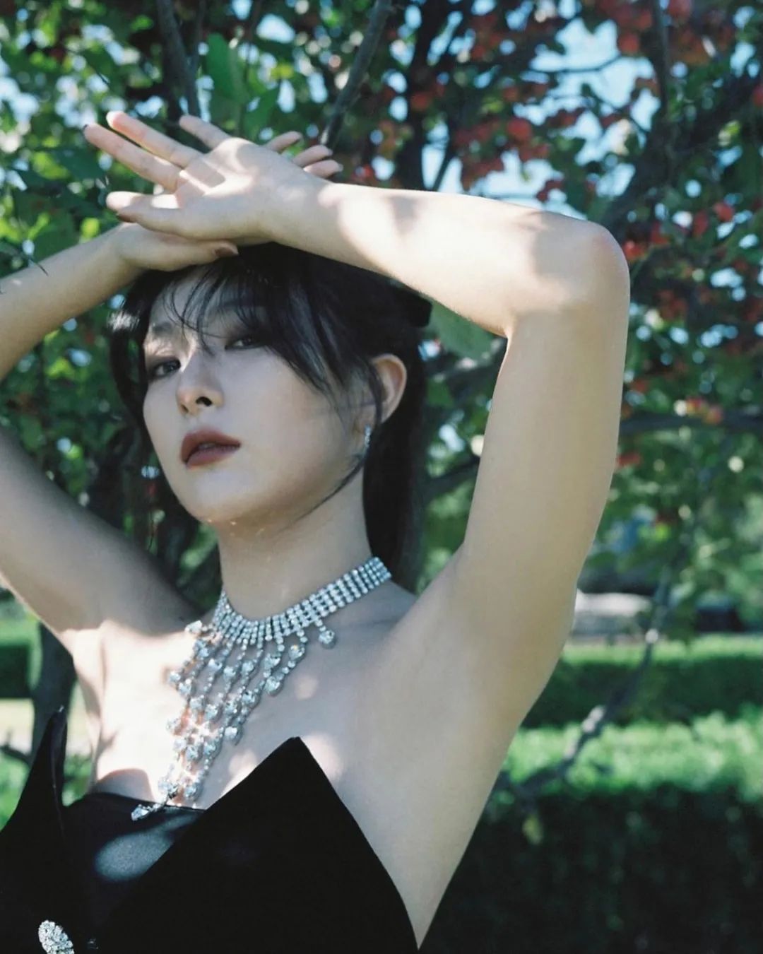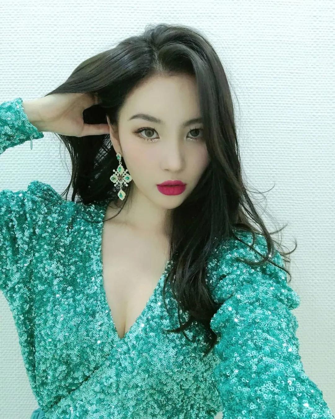 用口红强化妆容、提升气场的还有宣美。宣美的嘴唇其实不算太薄,主要是五官量感大,加上长脸,衬得嘴唇薄——