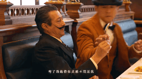 二人毫不违和地降落在19世纪的蓝色列车餐厅里,周董一个回身,将这座法式宫廷风格的餐厅尽收眼底。