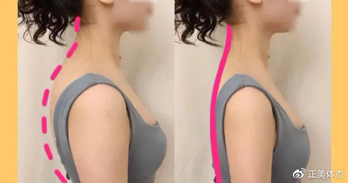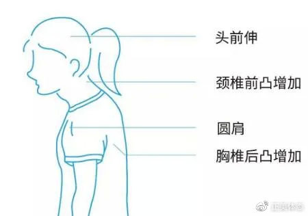 当这种体态持续时间比较长之后,脖子也变粗了,肩胛骨还突出来了,整个人的状态表现出向下的佝偻状。