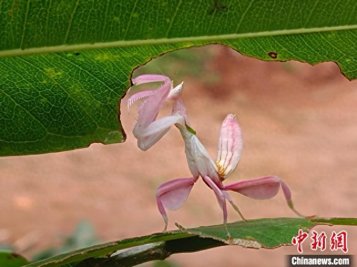 中新网普洱1月17日电(陶平)近日,云南省普洱市宁洱县再现昆虫界“伪装大师”兰花螳螂。兰花螳螂酷似粉红色的兰花花瓣,也靠伪装进行捕食和躲避天敌,是昆虫界的“伪装大师”和颜值担当的“花仙子”。