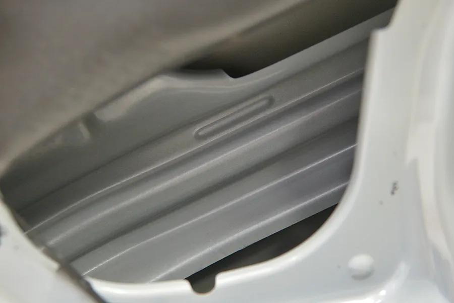 拆掉车门内饰板,大部分由钢板覆盖,只留重要的检修口,贴有发泡棉密封,没有看到辅助气囊弹出的气压传感器。
