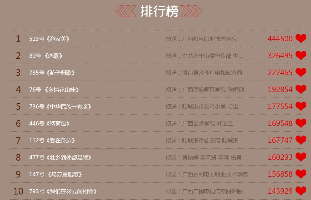 广西新民歌大会点赞排行榜截图
