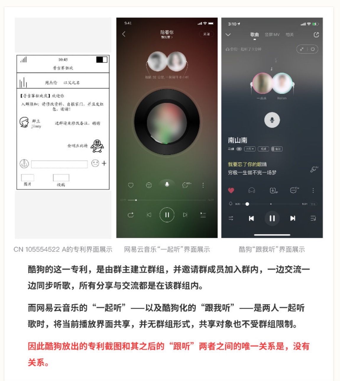 酷狗音乐晒专利回应抄袭,网易云反驳:文件驴唇不对马嘴