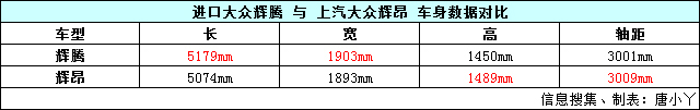 由于目前辉昂的具体各车型的信息还没有完全放出,能够查到的也只有2.0T一款至尊版车型,所以我们只能从大概的方面来具体对比一下辉腾和辉昂。首先来看看两者的车身尺寸,虽然在长和宽上辉腾小占优势,但是在高度和轴距上,辉昂更胜一筹。