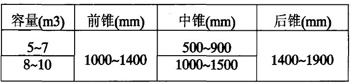 一般情况下,搅拌筒的前锥、中锥、后锥长度的参数选取如下: