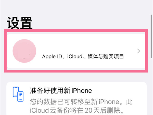 1、从设置菜单中选择最上方的Apple ID。