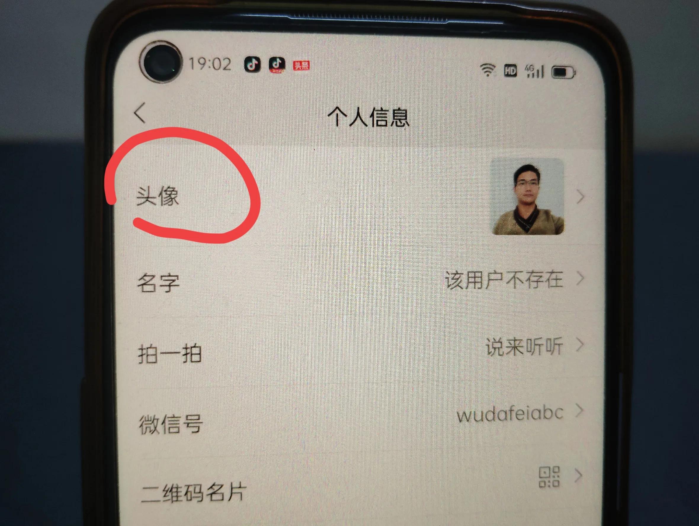 进入个人主页后,点击头像,(如上图所示)