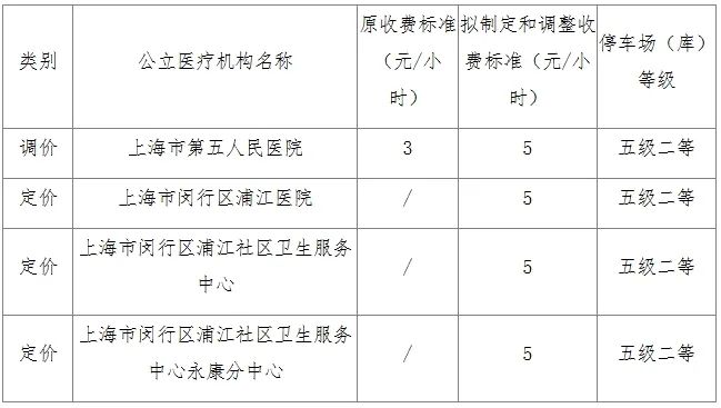 根据《上海市政府制定价格行为规则》(沪发改规范〔2020〕1号)、《上海市定价目录》(沪发改规范〔2022〕5号)等文件精神,为做好闵行区三级甲等以外公立医疗机构配套建设停车场所停车设施服务收费定调价工作,现将拟制定和调整收费标准的公立医疗机构停车费标准公示如下,听取社会意见。