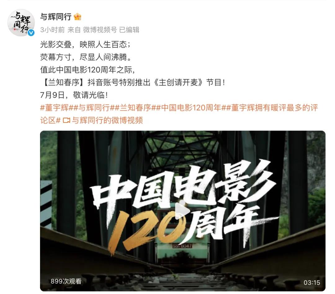7月4日,@与辉同行 发文:“【兰知春序】抖音账号特别推出《主创请开麦》节目!”据悉,该栏目将以电影为主题,带领观众一起走进电影的世界。截至发稿,“兰知春序”抖音账号粉丝量已超30万。