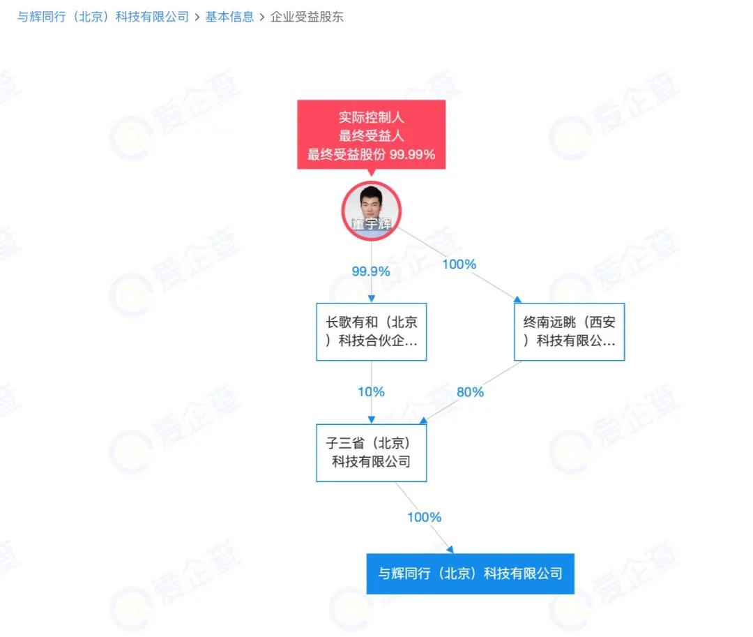 另据爱企查App显示,2025年2月,与辉同行(北京)科技有限公司发生工商变更,原全资股东董宇辉退出股东行列,新增子三省(北京)科技有限公司为股东并全资持股,董宇辉由直接持股变更为间接持股。企业受益股东显示,董宇辉仍为该公司最终受益人。此前媒体报道,与辉同行方面2月10日对此回应称,该变动为正常公司业务发展需要。