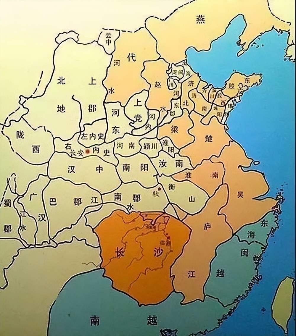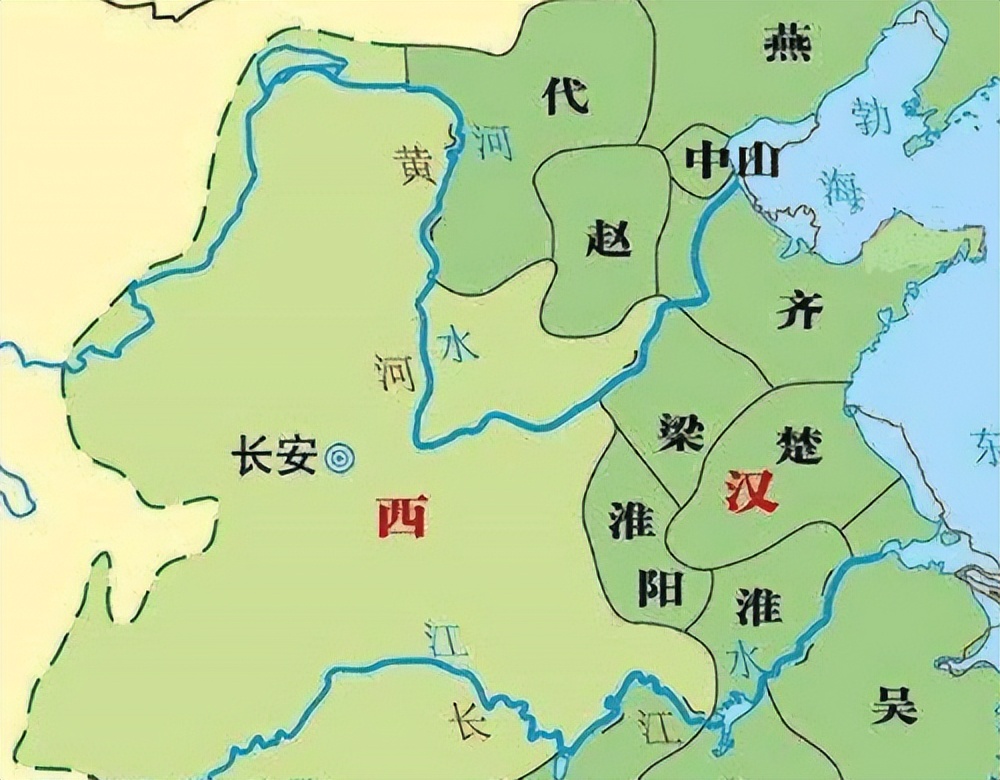代王刘恒继位时,仍有楚国、吴国、齐国、赵国(原淮阳王刘友子刘遂)、淮南国五国并存。