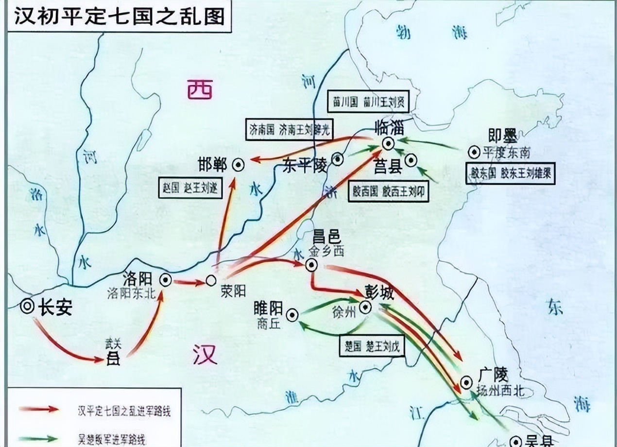 刘卬的“威信”很高,一番鼓动,齐国、济南国、济北国、胶东国、菑川国纷纷响应。