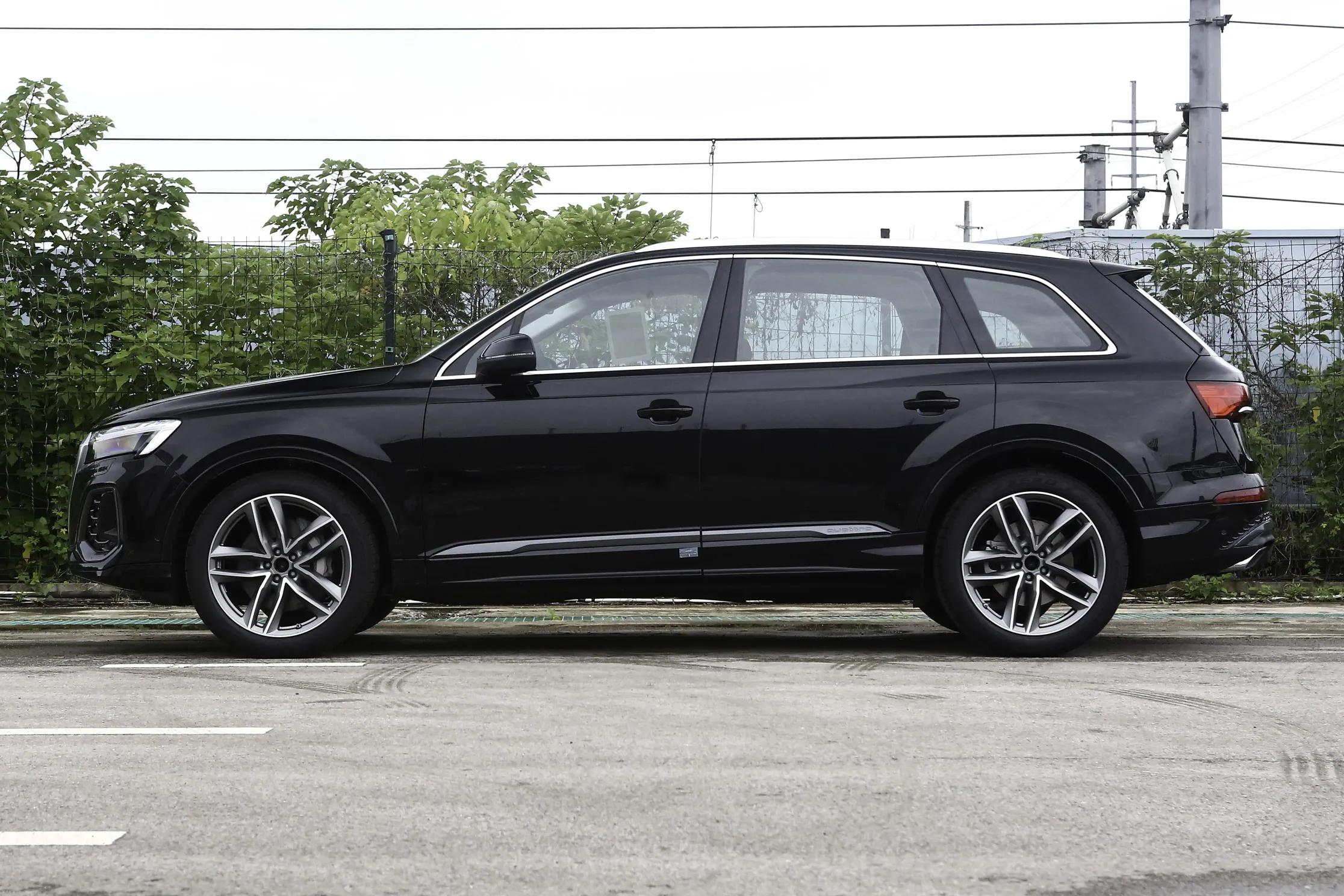 车身侧面比较修长,5067mm的车长有一定的气场。侧面线条的刻画比较收敛,并不夸张,但前后肩线和轮拱还是做了一些重点突出。新车配备了全车无钥匙进入,车顶行李架,外后视镜自动防眩目,21英寸轮毂。顶配采用22英寸轮毂。不过这个价位的车没有隔音玻璃,后排隐私玻璃需要选装有点让人想不明白。只有顶配给到了后排侧遮阳帘和电吸门。黑武士版采用熏黑轮毂,侧裙饰条,窗线和行李架等。