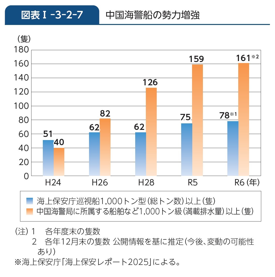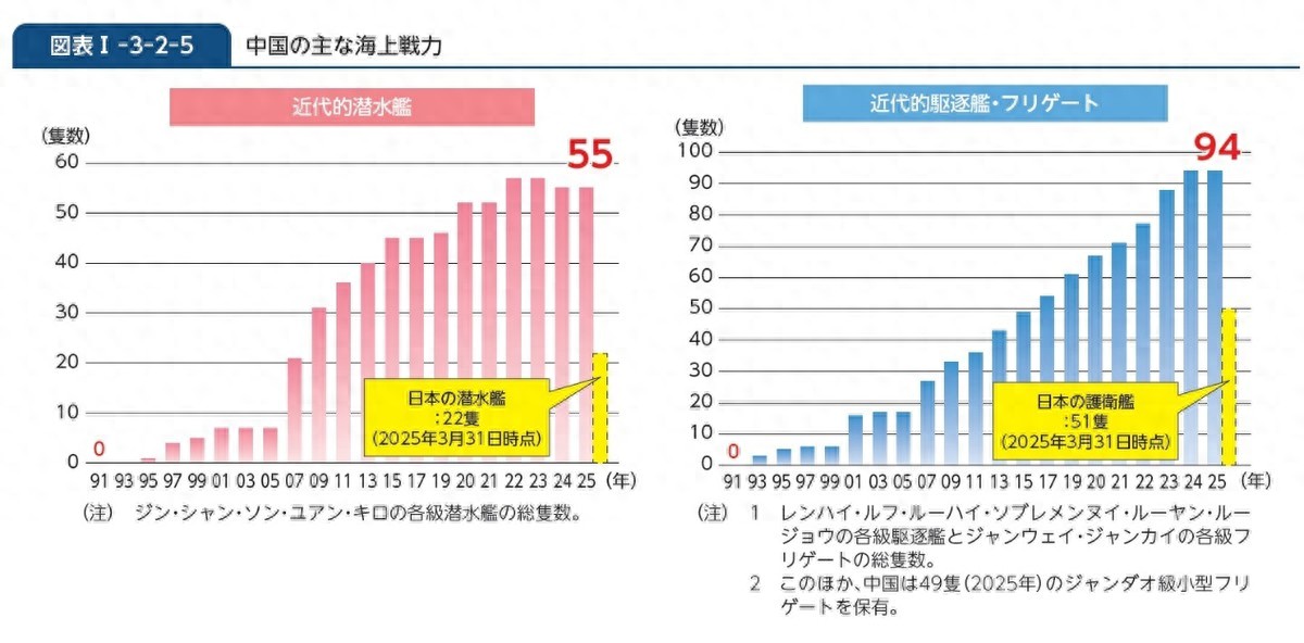 比如,日方统计2025年度解放军现代化驱护舰总数约94艘(应该不包括056A型轻护),远超日本海上自卫队的51艘;中国海警船总数161艘(1000吨以上),远超日本海上保安厅的78艘。